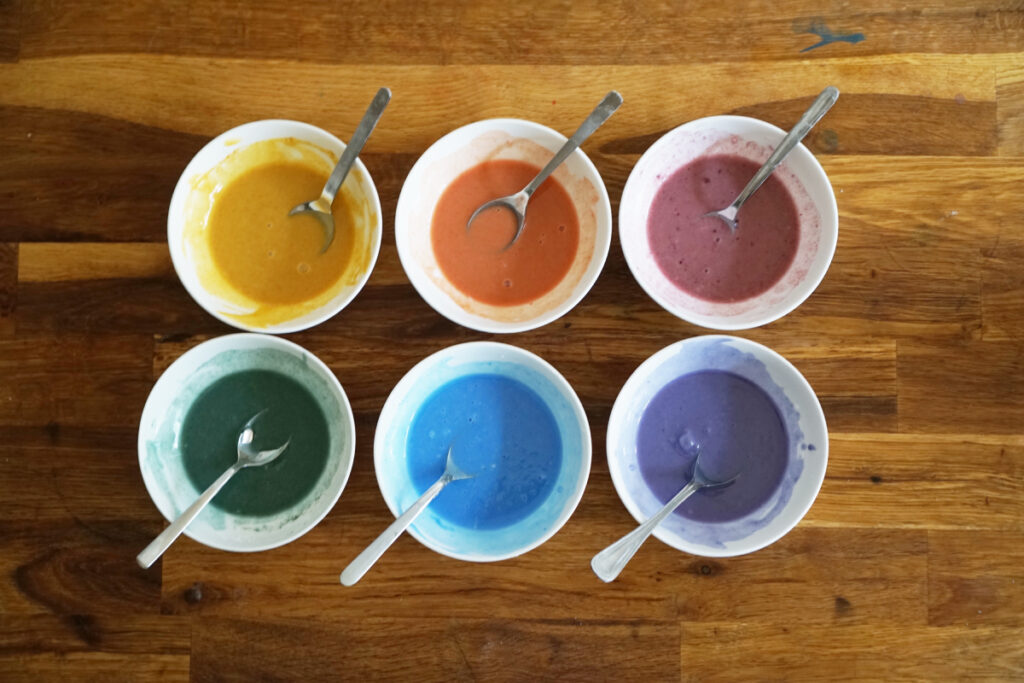 色付けには、私のオンラインショップで取り扱っている オーガニックの天然食用色素 を使用。