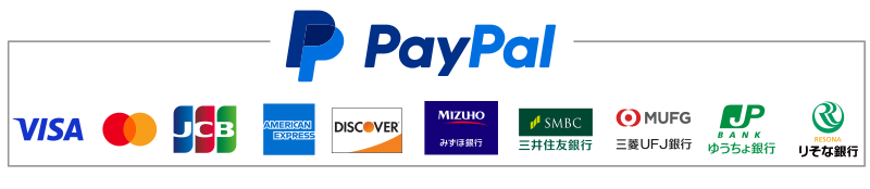 PayPalは世界的に広く利用されている安全な決済サービスで、無料でアカウントを作成し、クレジットカードや銀行口座を登録して簡単にお支払いいただけます。