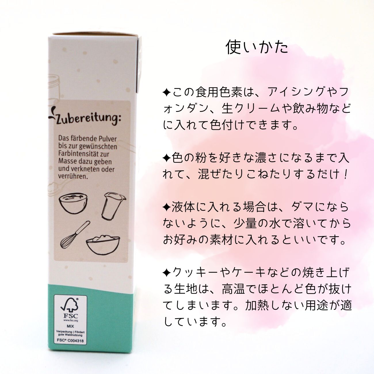 ♢この食用色素は、アイシングやフォンダン、生クリームやドリンクなどに入れて色付けできます。