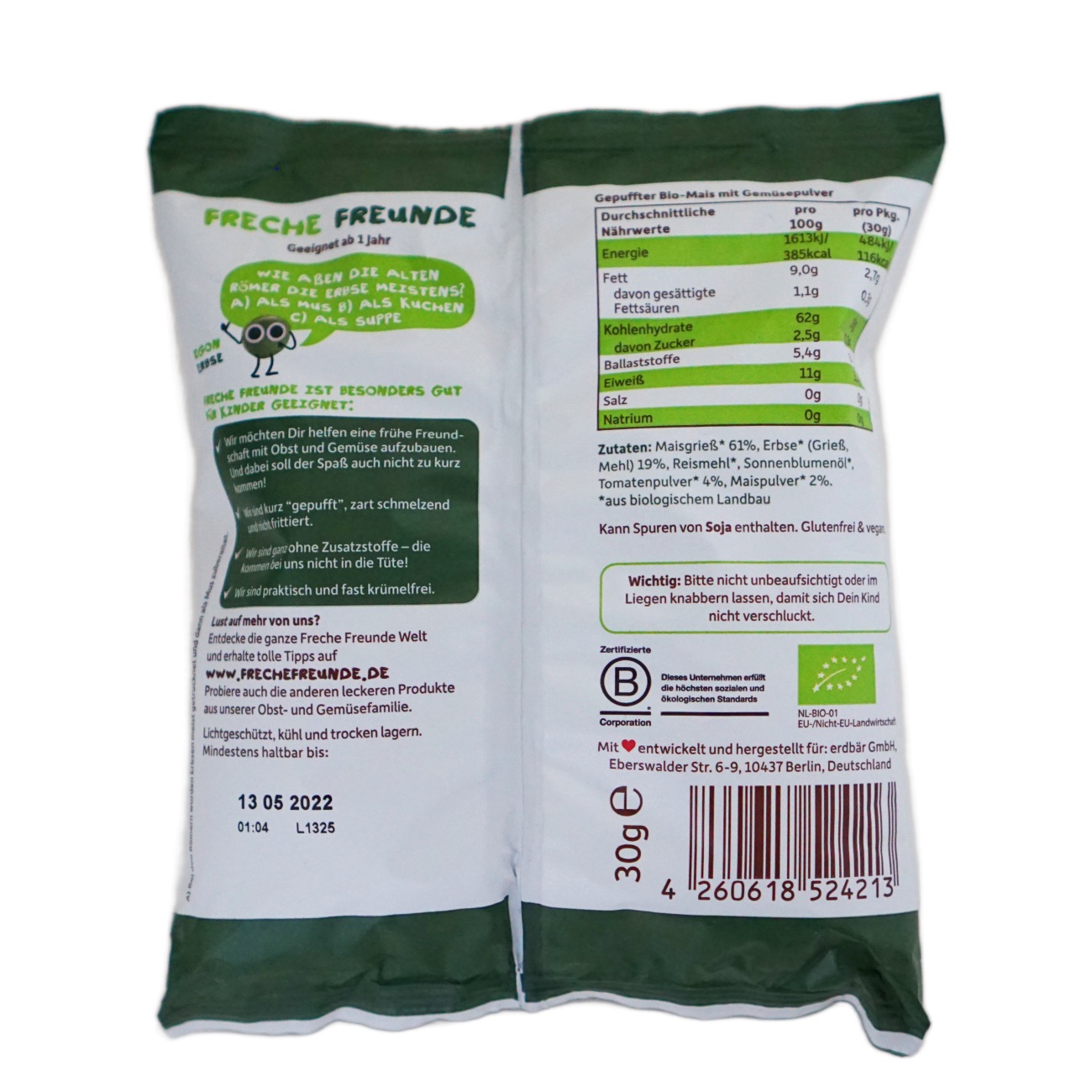 コーングリッツ*61%、えんどう豆*(粗びき粉、粉)19%、米粉*、ひまわり油*、トマトパウダー*4%、とうもろこし粉*2%