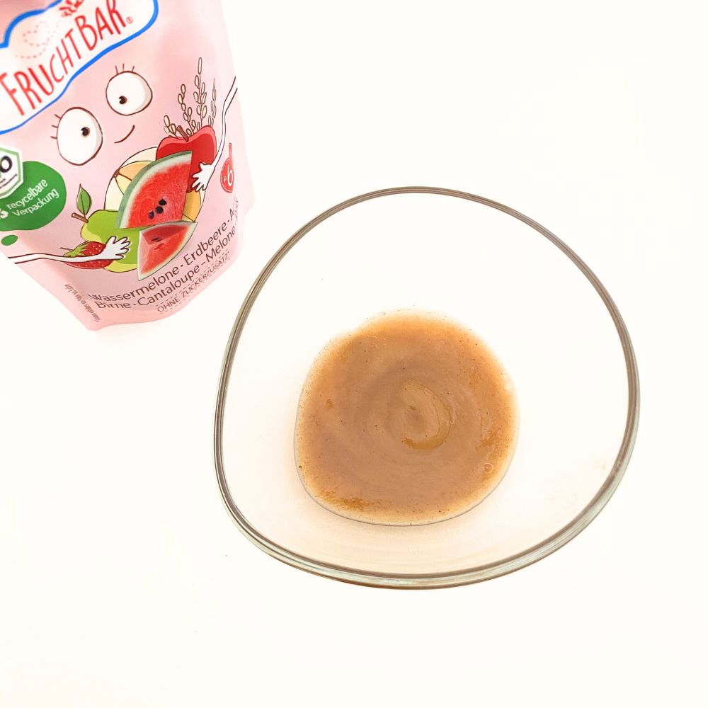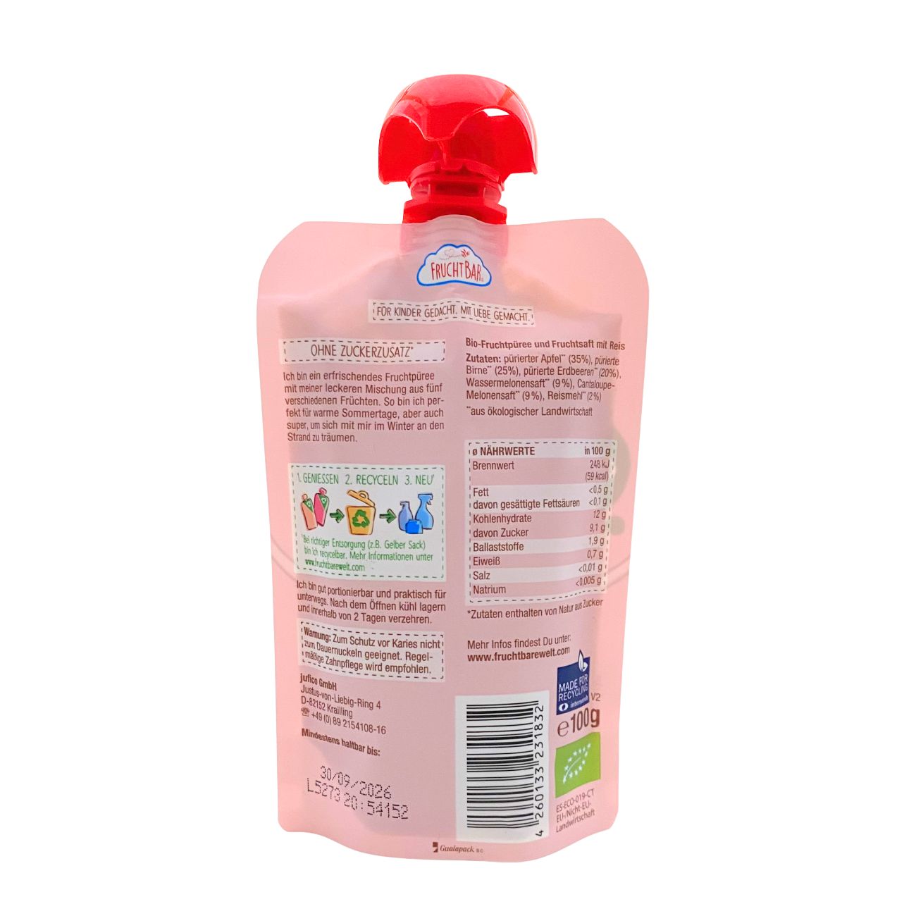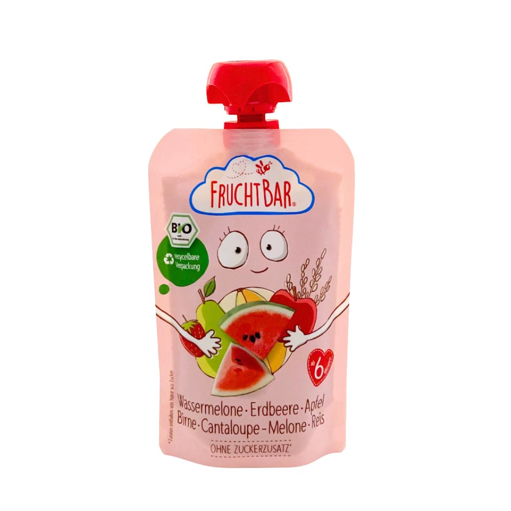 りんごピューレ*35%、洋梨ピューレ*25%、いちごピューレ*20%、すいか果汁*9%、マスクメロン果汁*9%、米粉*2%