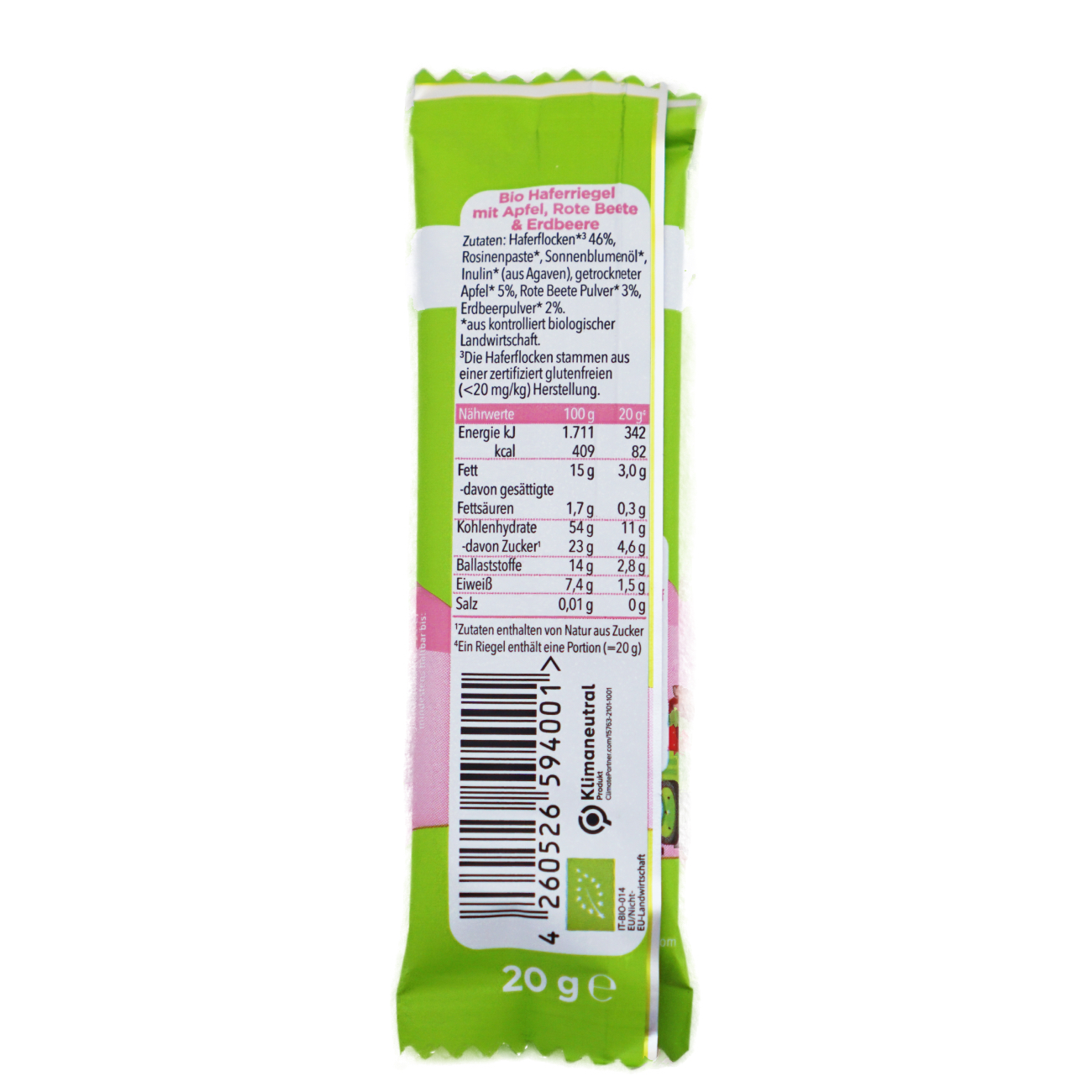 12か月から食べられる、りんご ・ビーツ・ いちご味のオートミールのシリアルバーです。