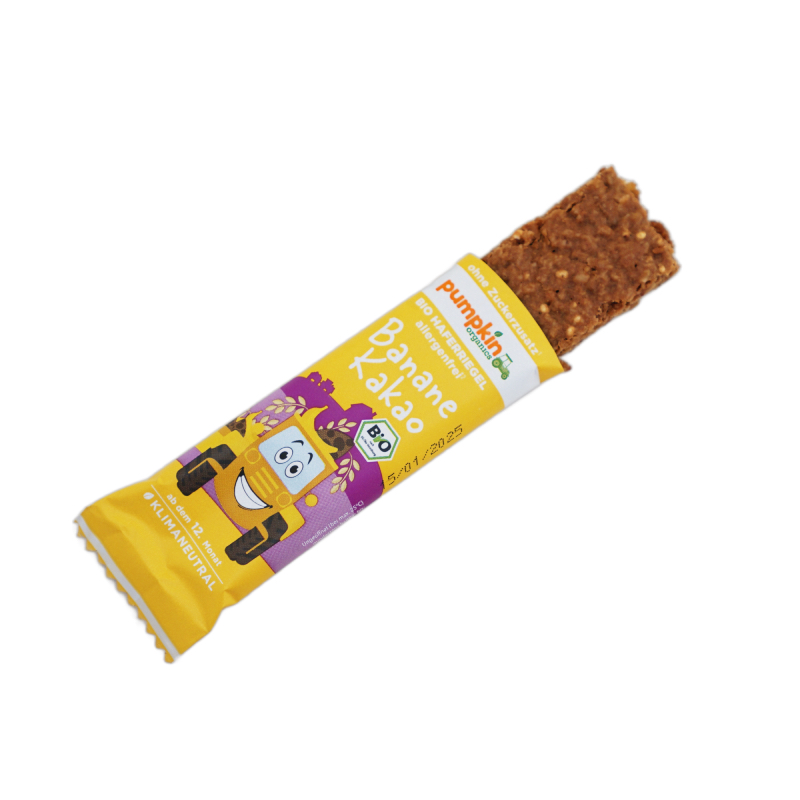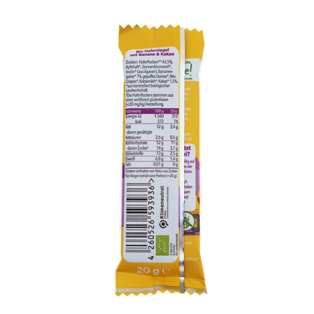 12か月から食べられる、バナナとココア味の、オートミール・シリアルバーです。