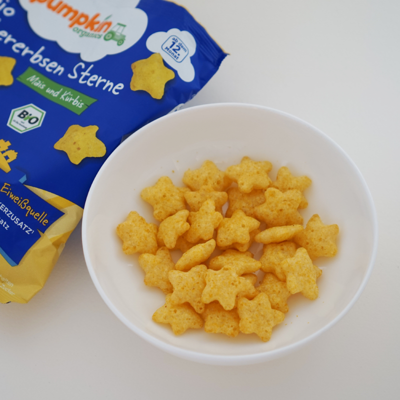 12か月から食べられる、ノンフライの、ひよこ豆スナックです。